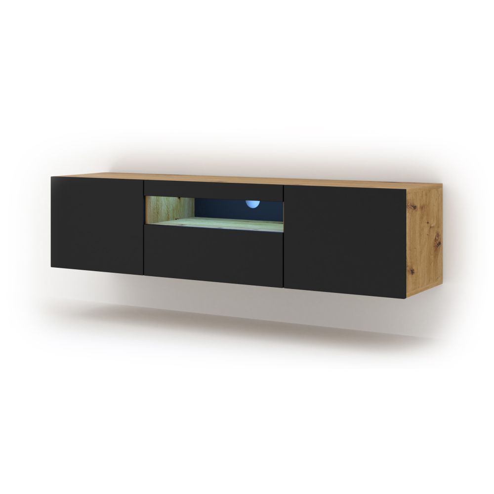 ТВ шкаф AURA 150 стоящ/окачен, дъб артисан/черен мат, LED