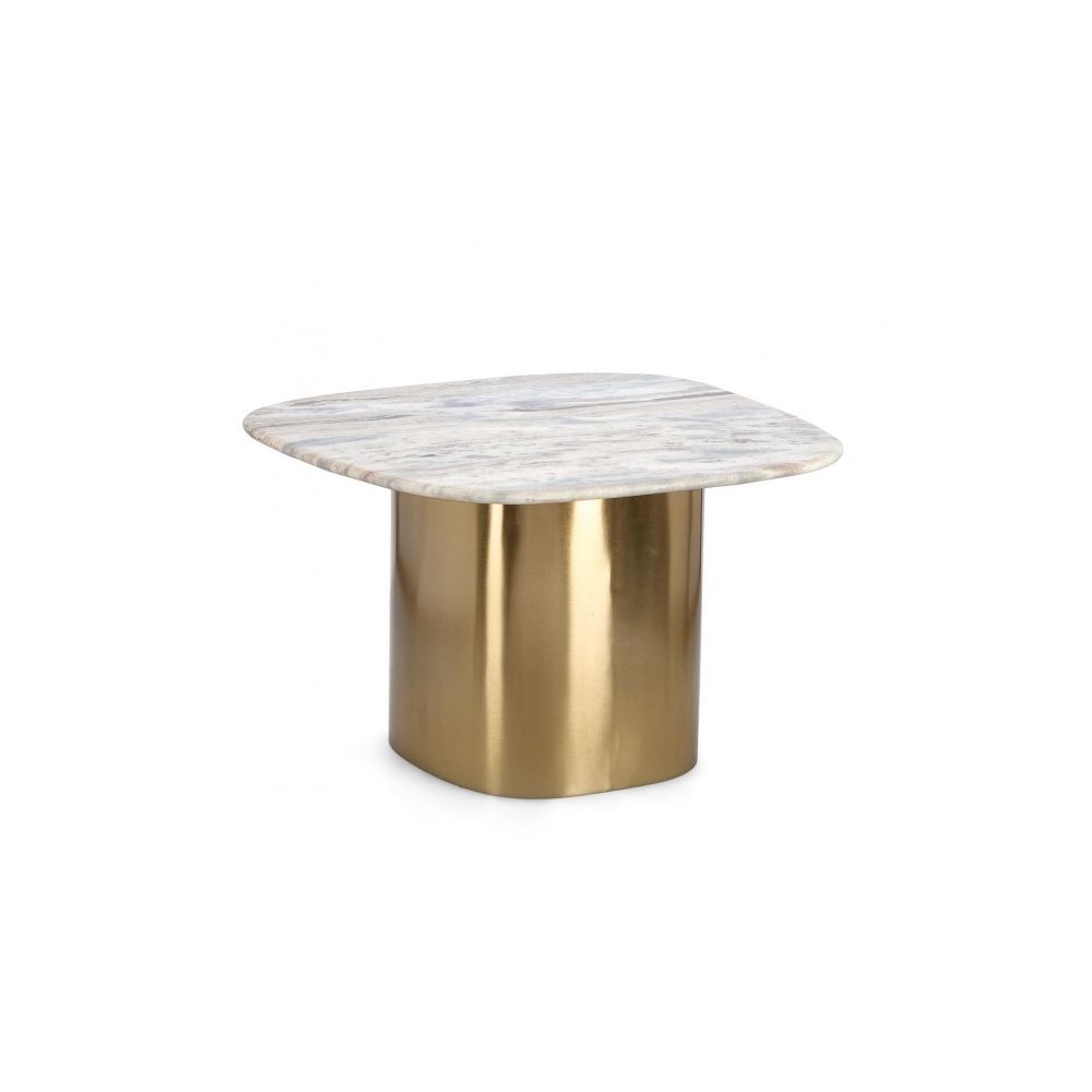 MARBLE TOP, NATURAL FINISH. BASE IN COATED STEEL GOLD COLOR. BASE TO BE ASSEMBLED