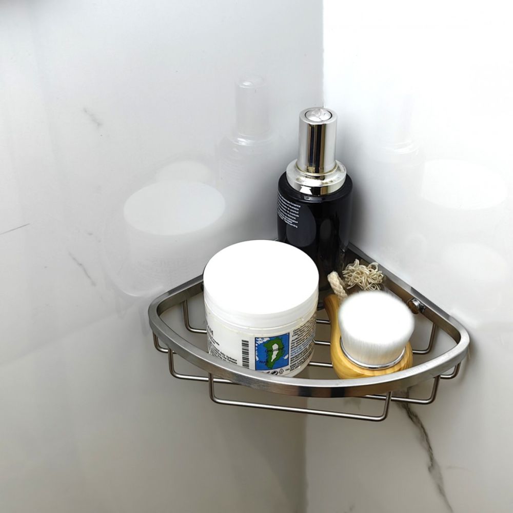 Triangular mesh basket made of brushed stainless steel with a matte finish. Fingerprint and moisture resistant.
