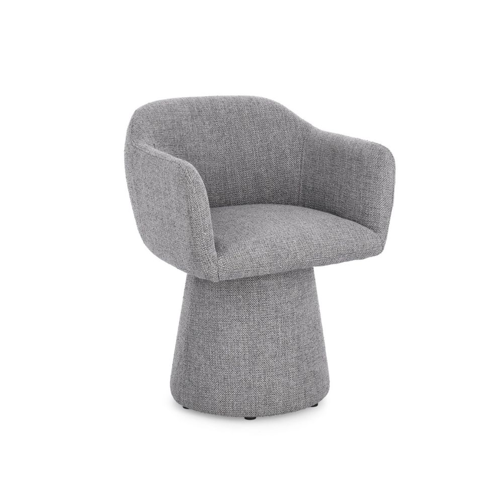 BASE LEGS IN PLYWOOD, BACK IN STEEL. SWIVEL SEAT 180° WITH RETURN MECHANISM, IN POWDER-COATED STEEL AND PLYWOOD. SEAT 22 KG/M3 BACKREST 30KG/M3. COATING 97% POLYESTER 3% ACRYLIC.