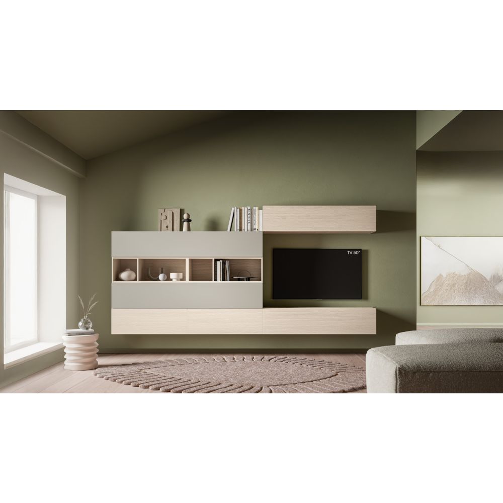 Relaxed lines and impeccable balance are the ingredients of a modern and minimalist living room in which open units and surfaces become the ideal canvas for expressing your personality with books and objects. *Décor selection available (contact us)