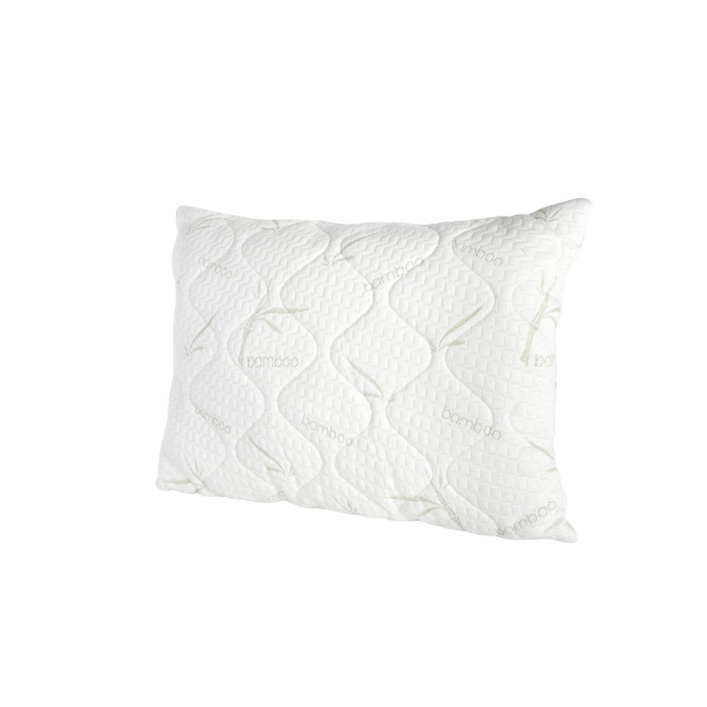 High and firm pillow designed for people who choose their pillow primarily based on firmness and height Exceptionally soft cover with a bamboo-containing surface fabric Bamboo fibers regulate temperature and absorb moisture for a fresher and more comfortable start to the day Size: 50 × 70 cm Firmness level: firm Height: 20 cm (measured without pressure from the highest point) Removable cover: no Weight: 750 g Composition – cover fabric: 40% bamboo / 60% polyester Composition – filling: siliconized fiber and polyurethane foam pieces *The image is for illustrative purposes only and slight variations in tones and colors may occur.