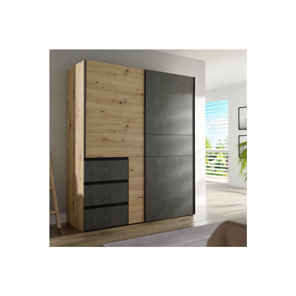 Finished in an attractive combination of decors: Artisan Oak / Concrete