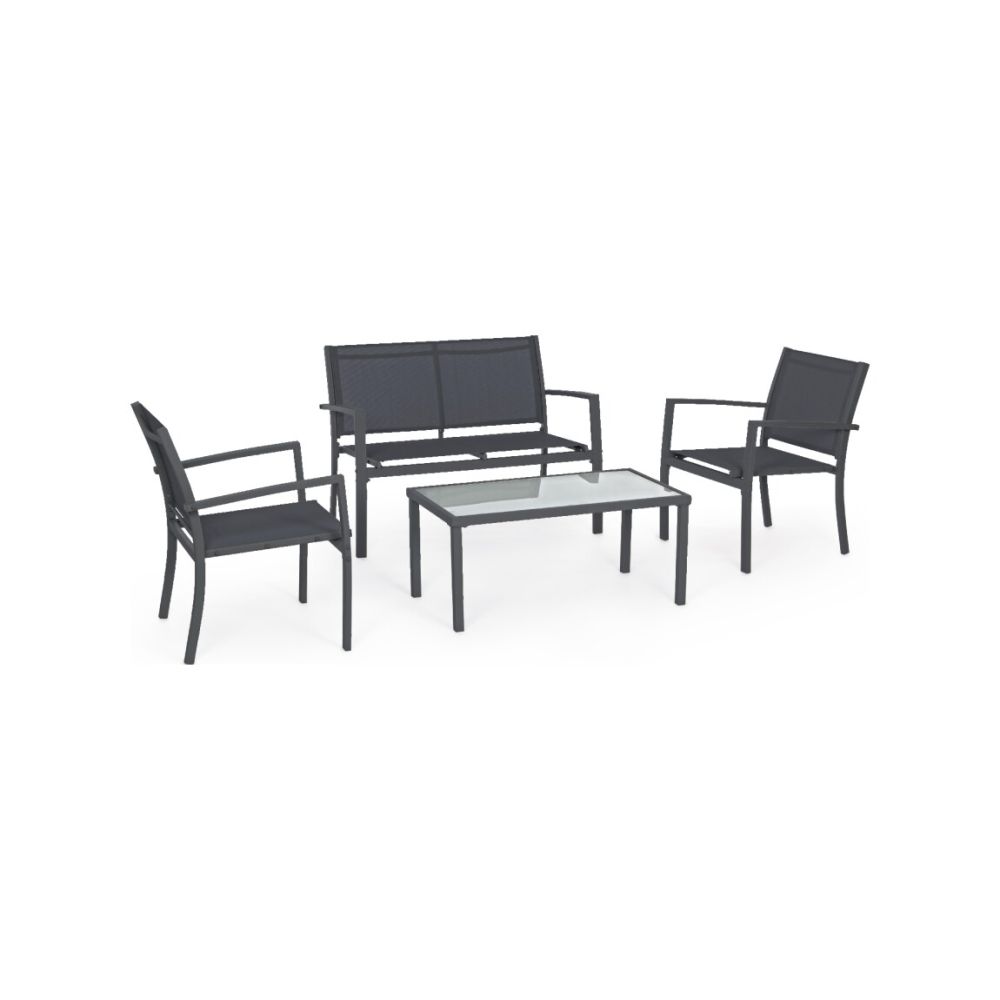 Конструкцията на дивана и фотьойлите е от боядисана в антрацит стомана, със седалка от антрацитен текстил.