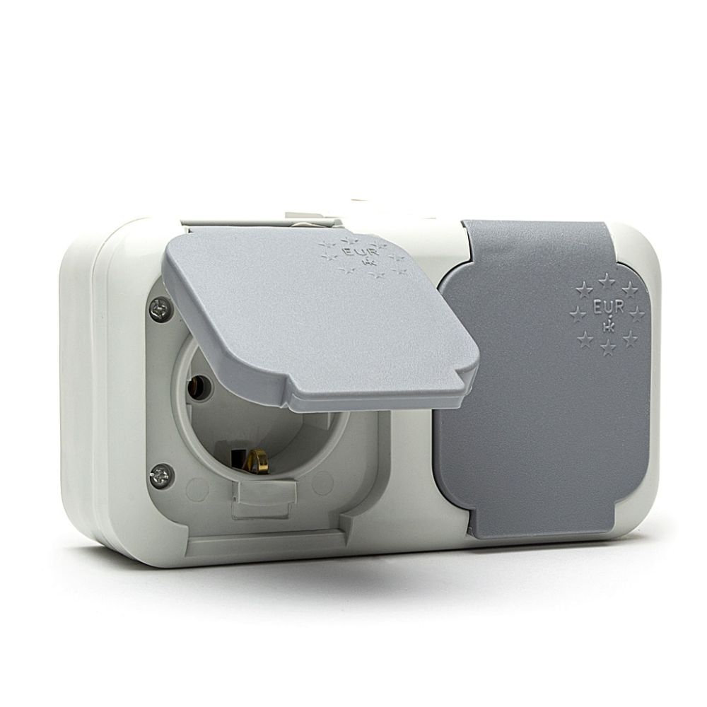 Контакт Двоен ЕВРО НК, ШУКО 2x2P+T, Сив, 16A, 250V, ПКОМ, IP44