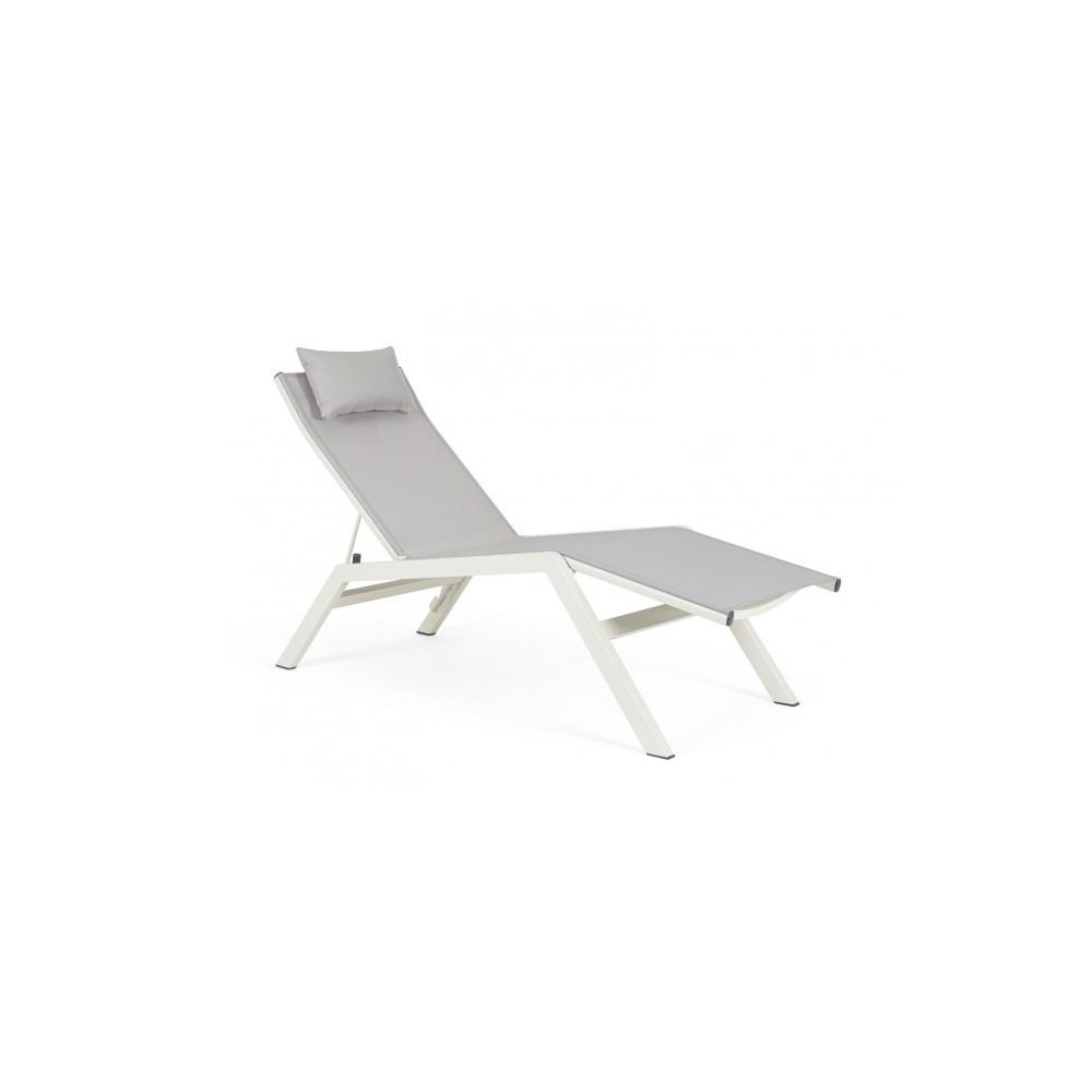 ALUMINIUM FRAME, POWDER COATED (POLYESTER). TEXTILENE 1X1. THREE POSITIONS RECLINING BACKREST. REMOVABLE HEADREST CUSHION WITH REMOVABLE COVER AND FILLING FOR OUTDOOR USE FAST DRY FOAM. STAINLESS STEEL SCREWS. TO BE ASSEMBLED.