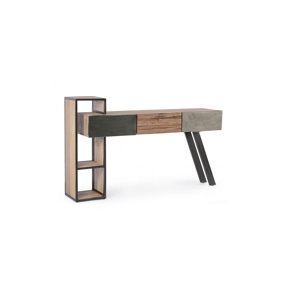 Рамка от мангово дърво и стомана, гръб от шперплат. Предна част на вратички и чекмеджета от рециклирано дърво или лист желязо или фиброциментово покритие. Защитно акрилно покритие. Регулируеми крачета. Артикулът от рециклирано дърво се характеризира с наличието на дървени щифтове от различни видове и цветове дърво. Всякакви цепнатини, пукнатини или несъвършенства, които могат да се появят с времето, са характерни за този материал и правят всяко парче уникално и оригинално. За сглобяване.