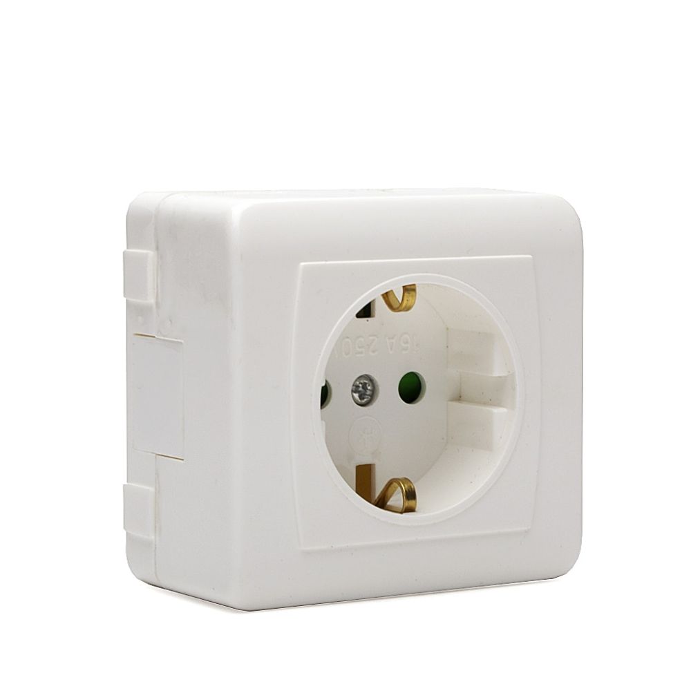 Контакт Мираж НК 2P+T, 16A, 250V, Открит монтаж, Бял