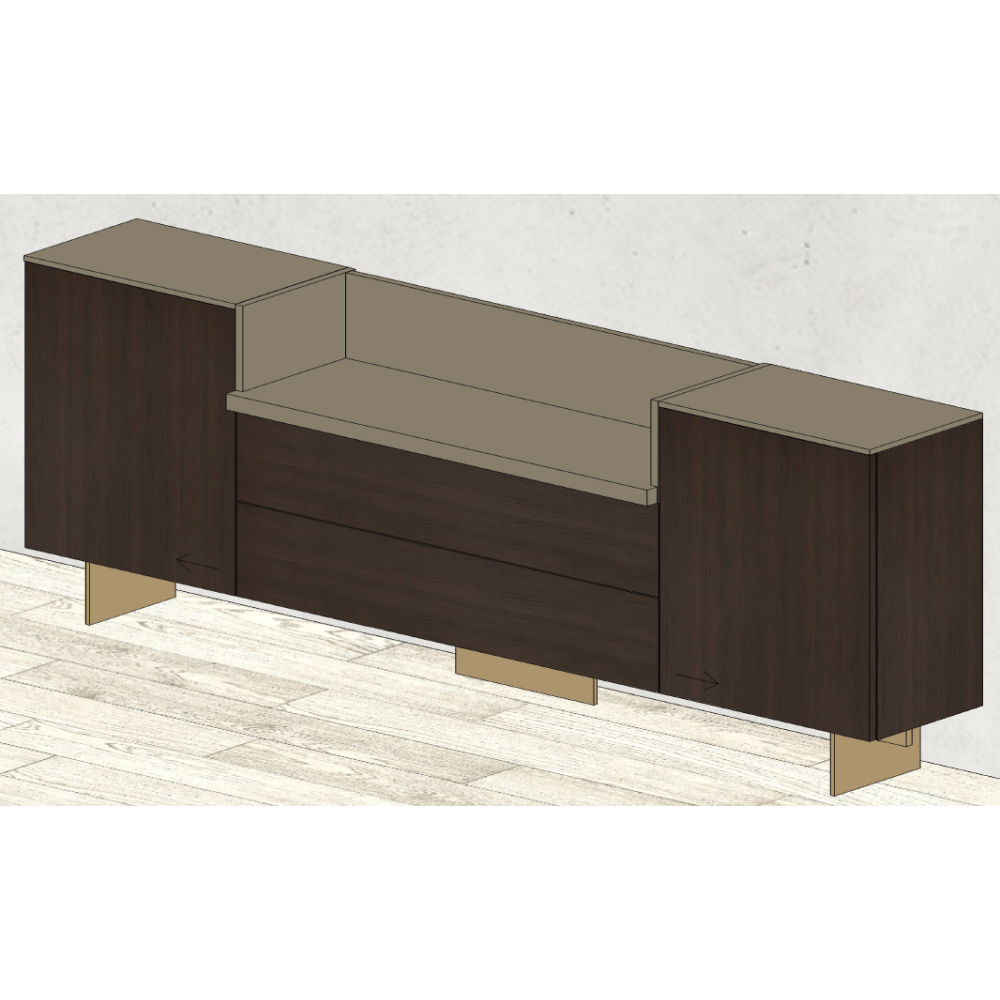 Превърнете серия от модулни елементи в един обширен шкаф с цялостна визия, като добавите TV модул с покритие Champagne, което съчетава перфектно със структурния елемент и металните крака.