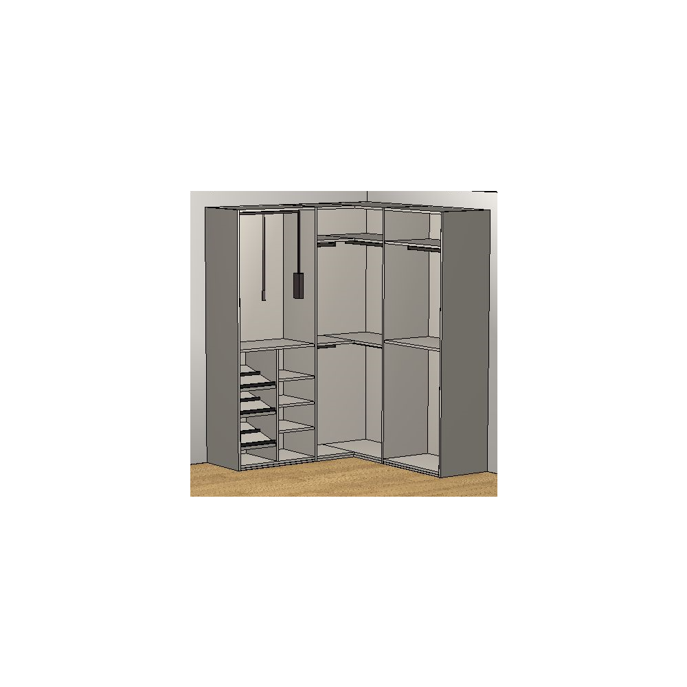This wardrobe can be closed with doors, creating alternating open and closed compartments.