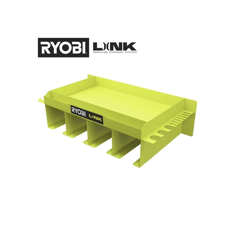 Започнете своята система за стенен монтаж LINK™ с рафта за окачване на инструменти Ryobi LINK RSLW401, проектиран да максимизира вашето пространство за съхранение. Широката повърхност на рафта позволява поставянето на 4 електроинструмента, а вграденото място за ръчни инструменти осигурява максимален достъп дори в тесни пространства, като поддържа товар до 22,7 кг.